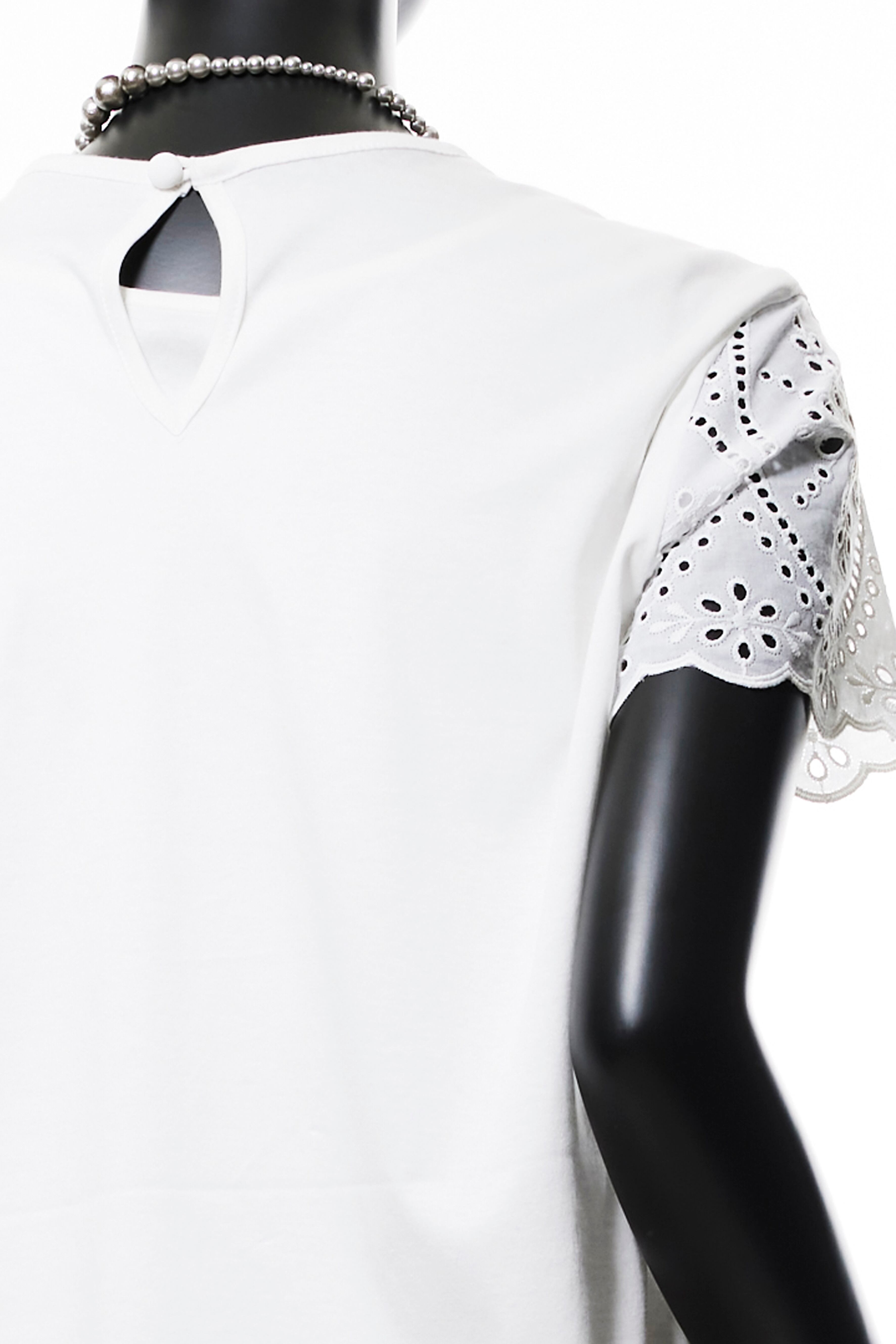 【221B013】バイカラークルー半袖ブラウス A_ホワイト×ホワイト