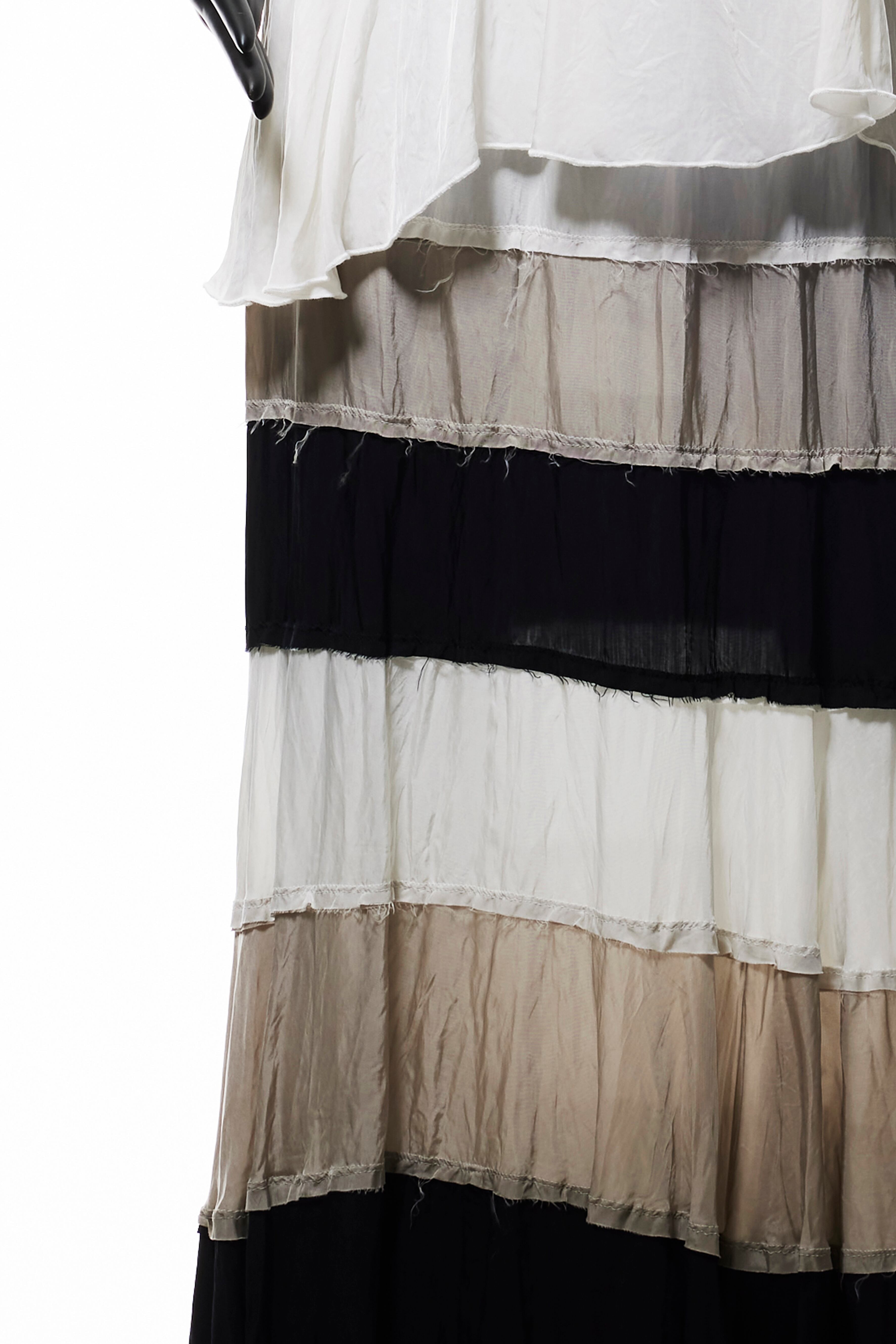 裾にはメローロック始末。歩いた時の生地の動きが有る様に、裾の分量はかなり多く贅沢に生地を使用しております。着用の仕方をスカートしての着用はもちろんの事、胸まで持ち上げてベアドレスの様にも着用できますので、お客様のスタイルに合わせてコーディネートをお楽しみ下さい。